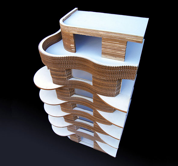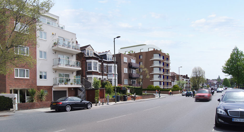 The six storey building in North London is designed with an exquisite facade that undulates at the top while the line at ground remains straight; the result is an elegant wave propagating from the ground.