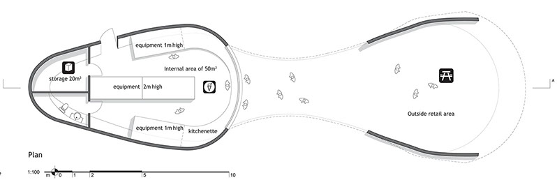 The kiosk and shelters were designed to be built using cutting edge technologies to eliminate construction time on site.